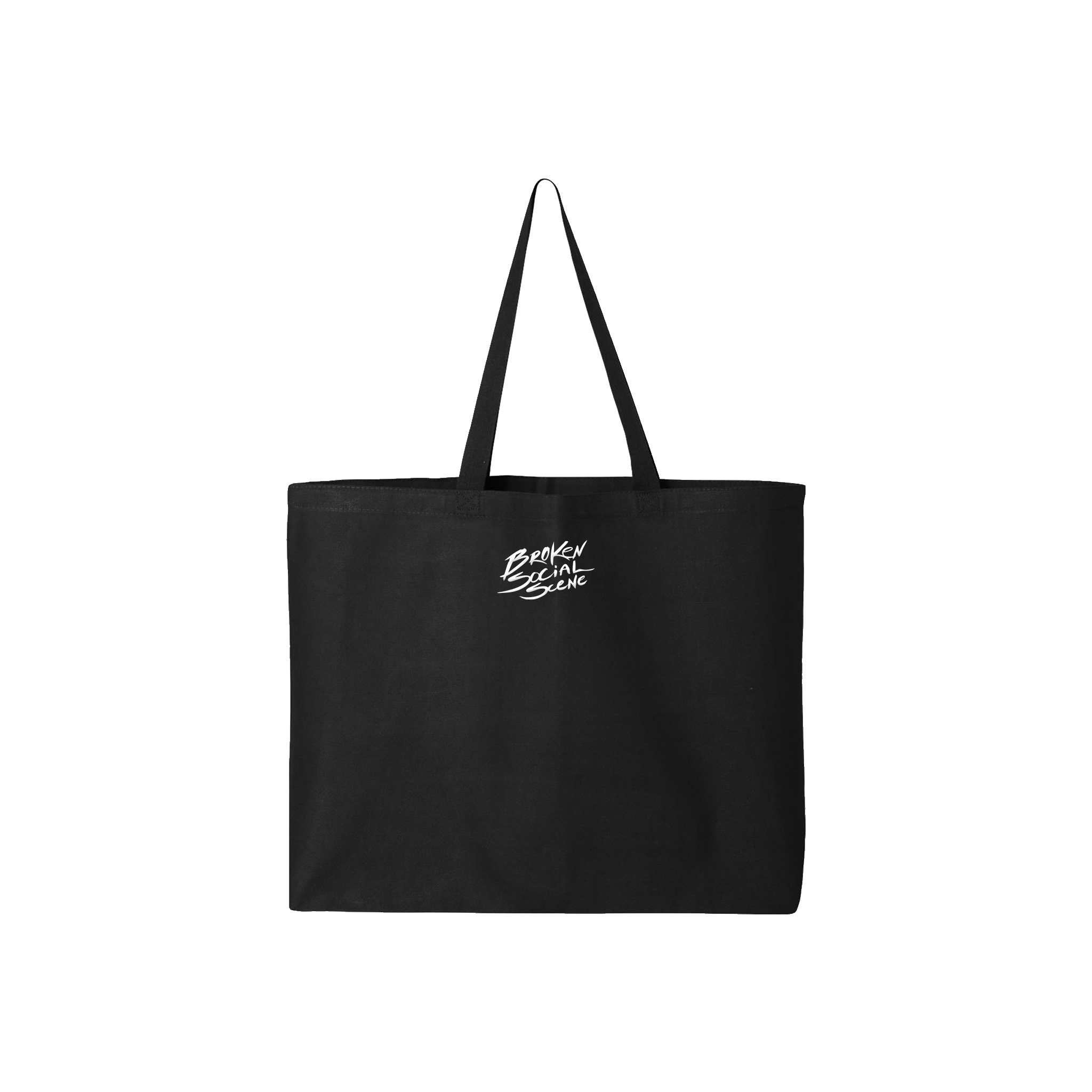 20"W x 15"H x 5"D cotton tote bag with gusset, BSS Lyric on the front and Broken Social Scene logo on back.